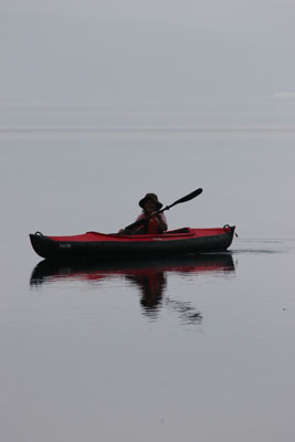 | ママは5時30からカヤック♪一人乗りで初めて乗ってみました・・・ドンドン左に回る(汗) | ||