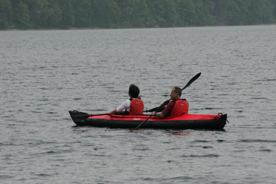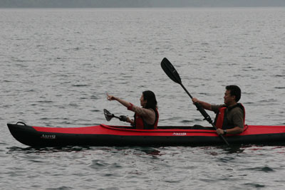 | kenjiさん・ひなっち。さすが男の子!力強いオール捌きだ。 | ||